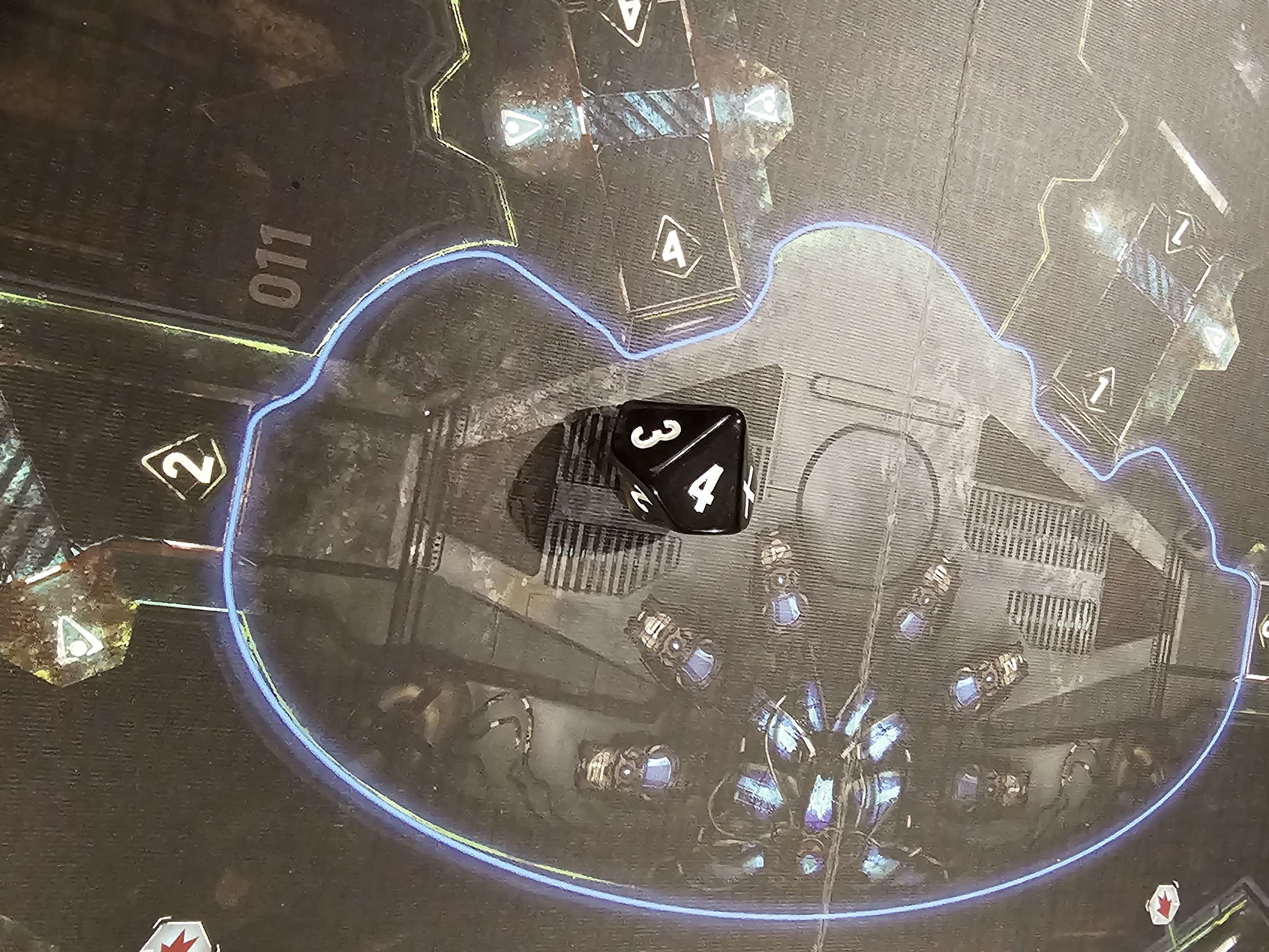 Now that we understand actions and exploration a bit better, we can talk about the part of the game which really stresses me out. Walking. If you notice on the board, each room is connected by a series of corridors labeled 1-4. When you take a move action and enter a room without another character or alien in it, you roll this evil object: