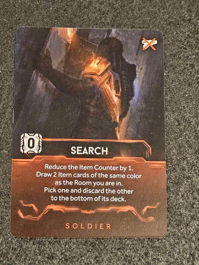 Well, it’s actually pretty simple. For the alien whose making you upset, they draw a card from their deck, you check what alien symbols are on it, and if it corresponds with the alien attacking then it hits and resolve the bottom effect. Otherwise, it misses. For the player, it’s only slightly more complicated. When you choose to attack it’s either with a weapon or with your bare hands. A weapon requires ammo, which is limited for everyone but the captain unless you find the correct weapon recharge item but that still takes an action to use, so that just eats up your action economy. To continue, you roll a neat red d6. After that you just follow a chart and depending on the class of alien you either hit or don’t based on the roll. Did you hit? Awesome, draw an alien attack card and check the top left value, if the alien has taken that much total damage it dies.